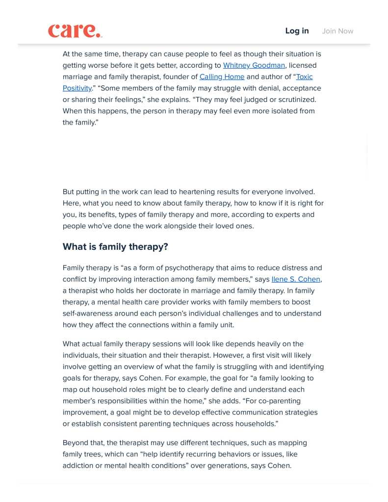 Read Family therapy: How you and your loved ones can benefit — and ways to get started here on Care.com.